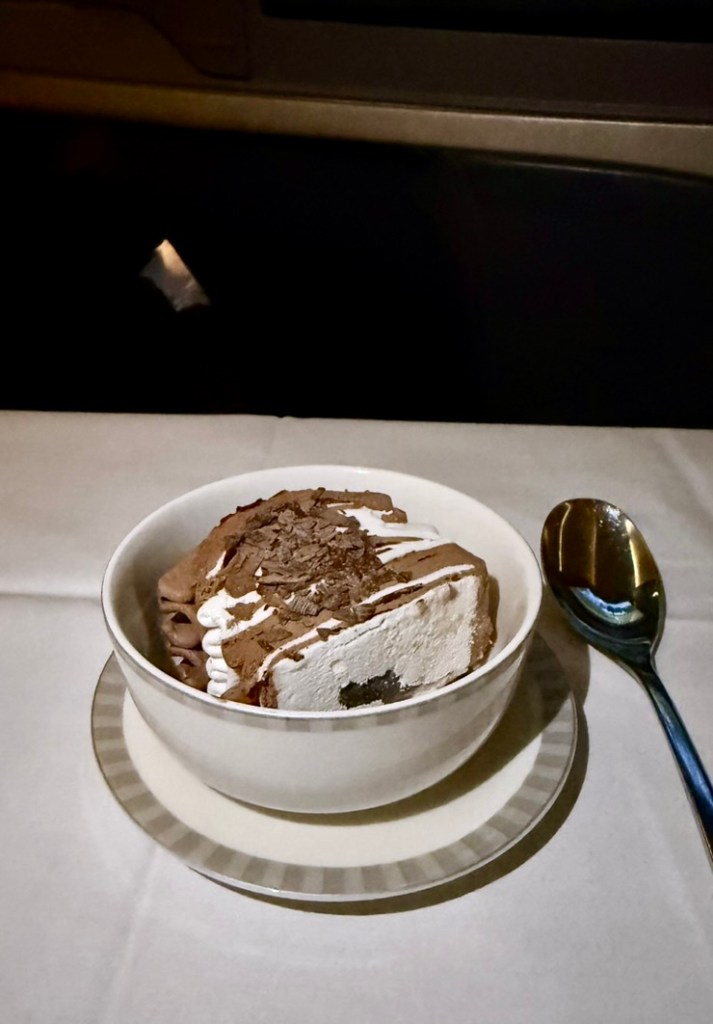 Rounding off with Viennetta Vanilla Ice cream. After which I watched some shows and tried to catch some shut-eye when they dimmed the aircraft not long after. But the mind refused to rest so I woke up immediately when they it was time for meal service again