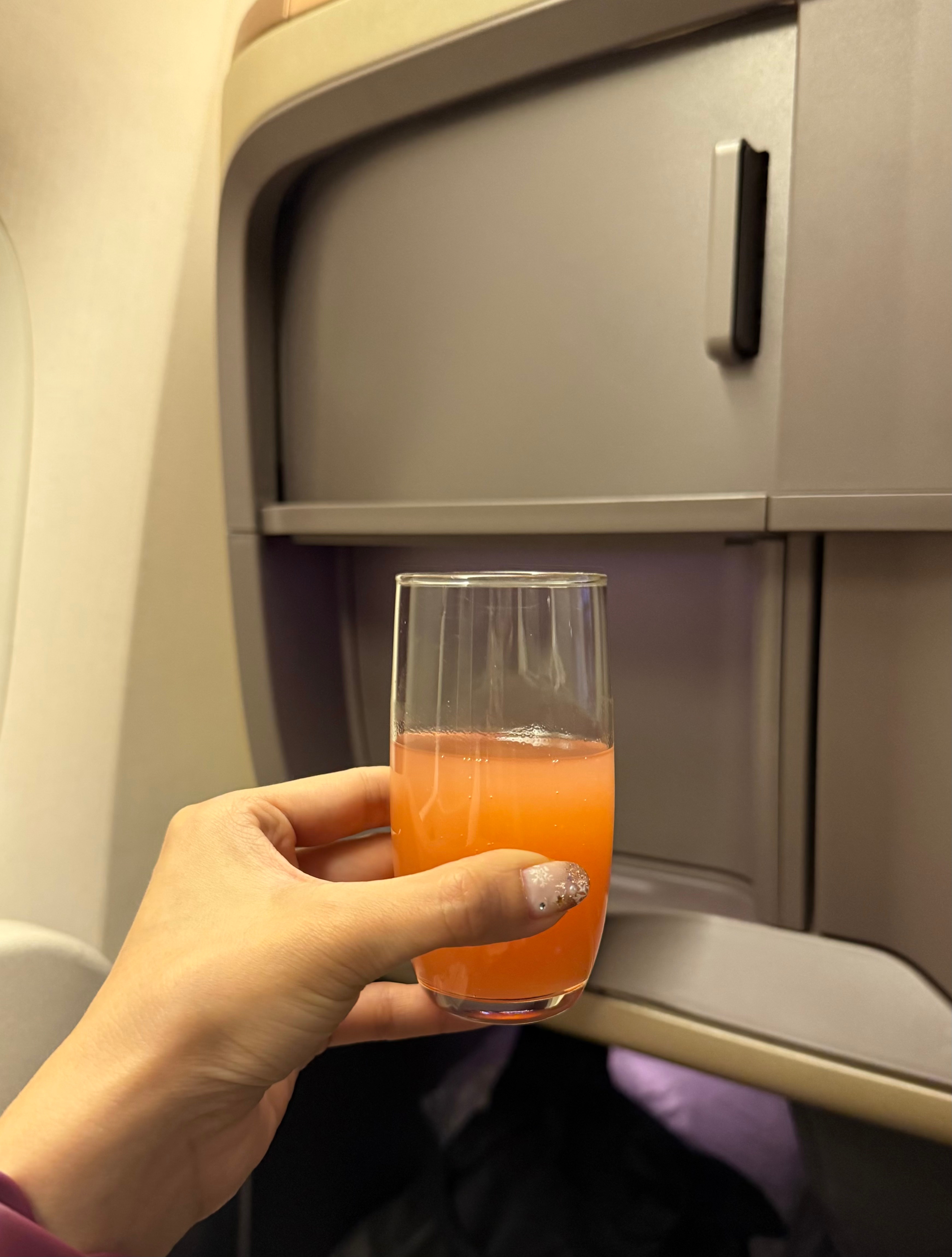 Then it was time to board and the crew came around with drinks. I tried the Bellini since I had never tried it before. I think I shall stick to OJ next time. lol