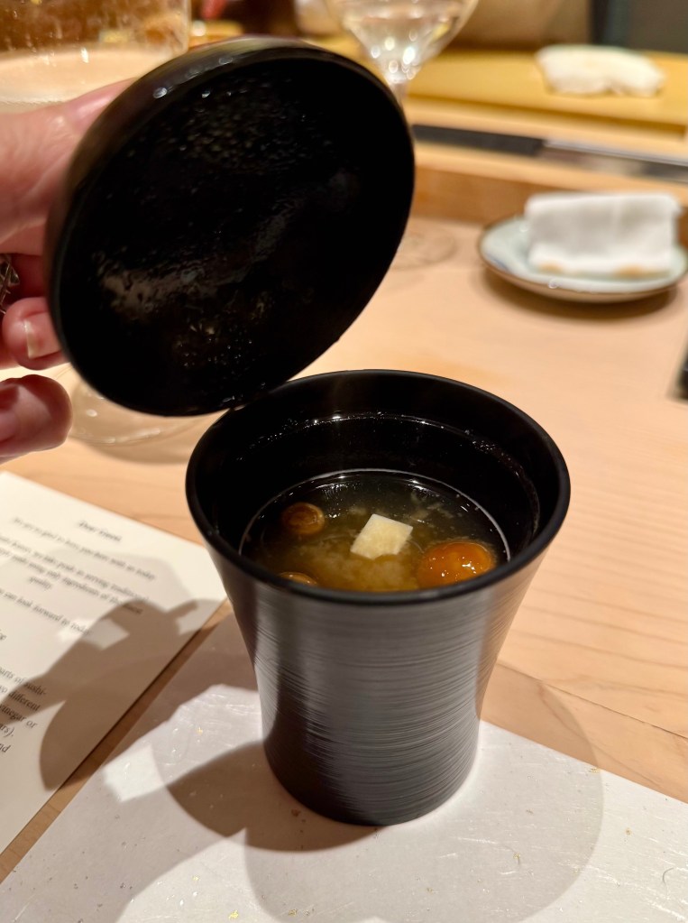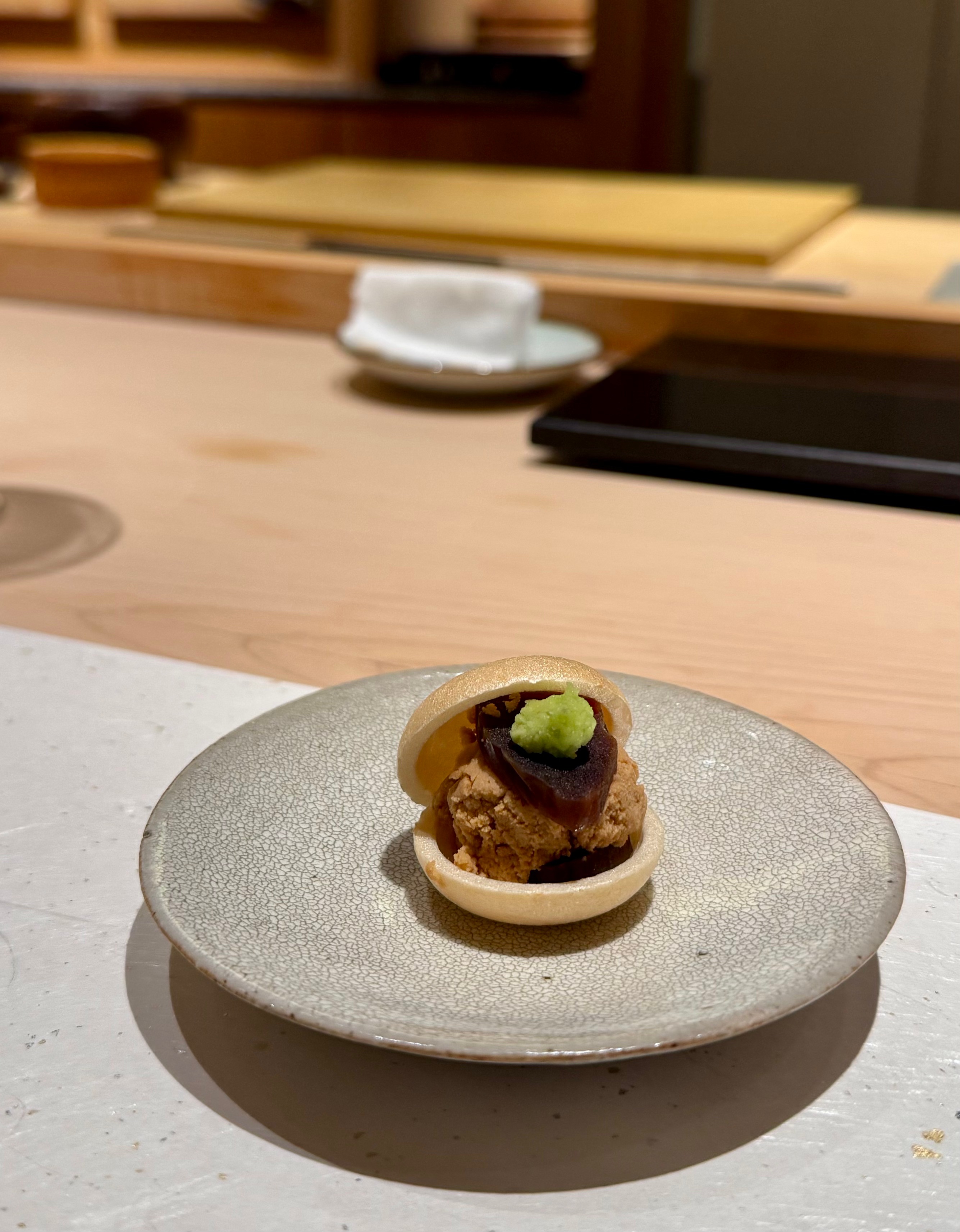 All sorts of flavour here – creaminess of the ankimo, wasabi and texture of the pickles. It’s like a refreshing break from the sushi