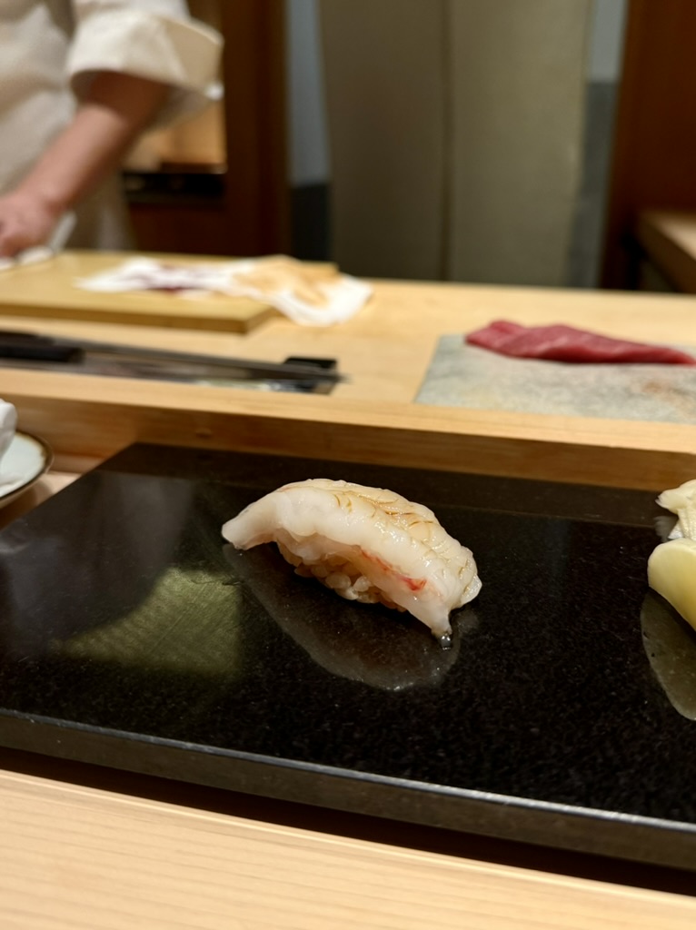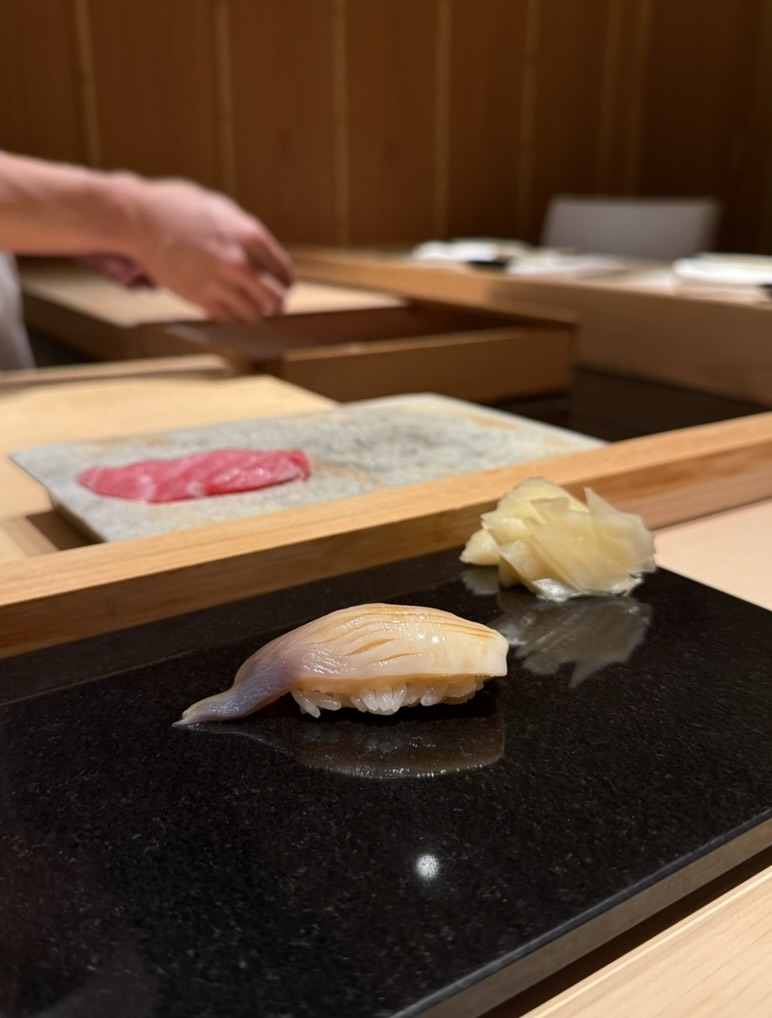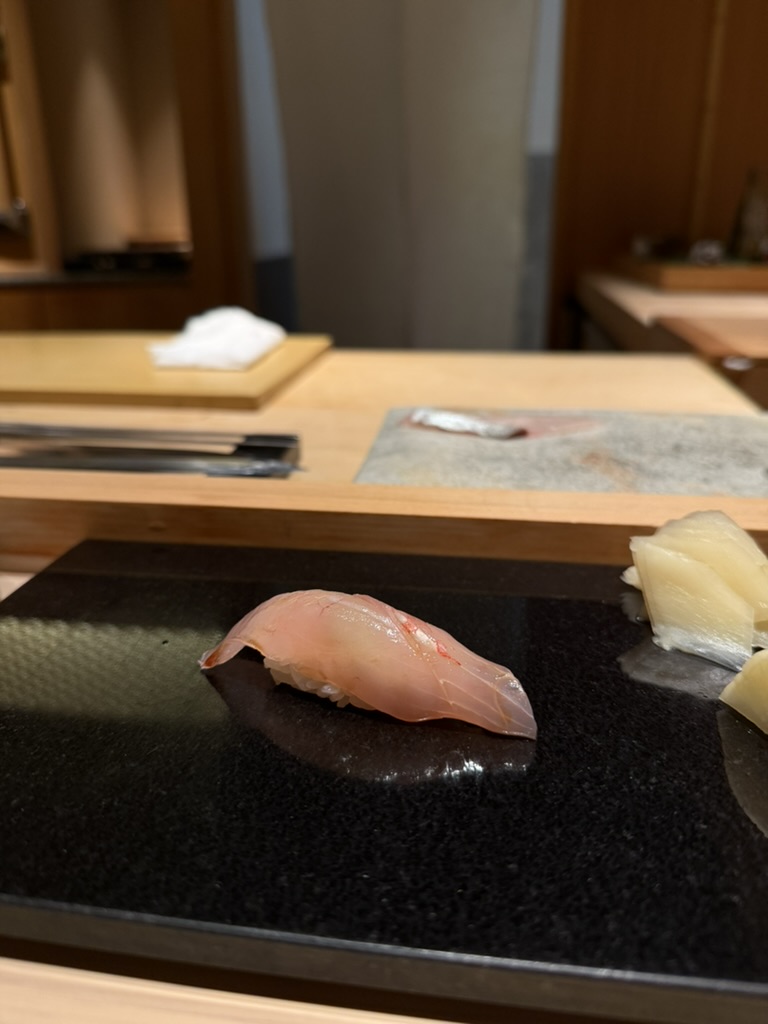 Shari was good. I liked the texture of the rice. The kawahagi also had a nice texture and crunch. I say the first piece was pretty good to start with