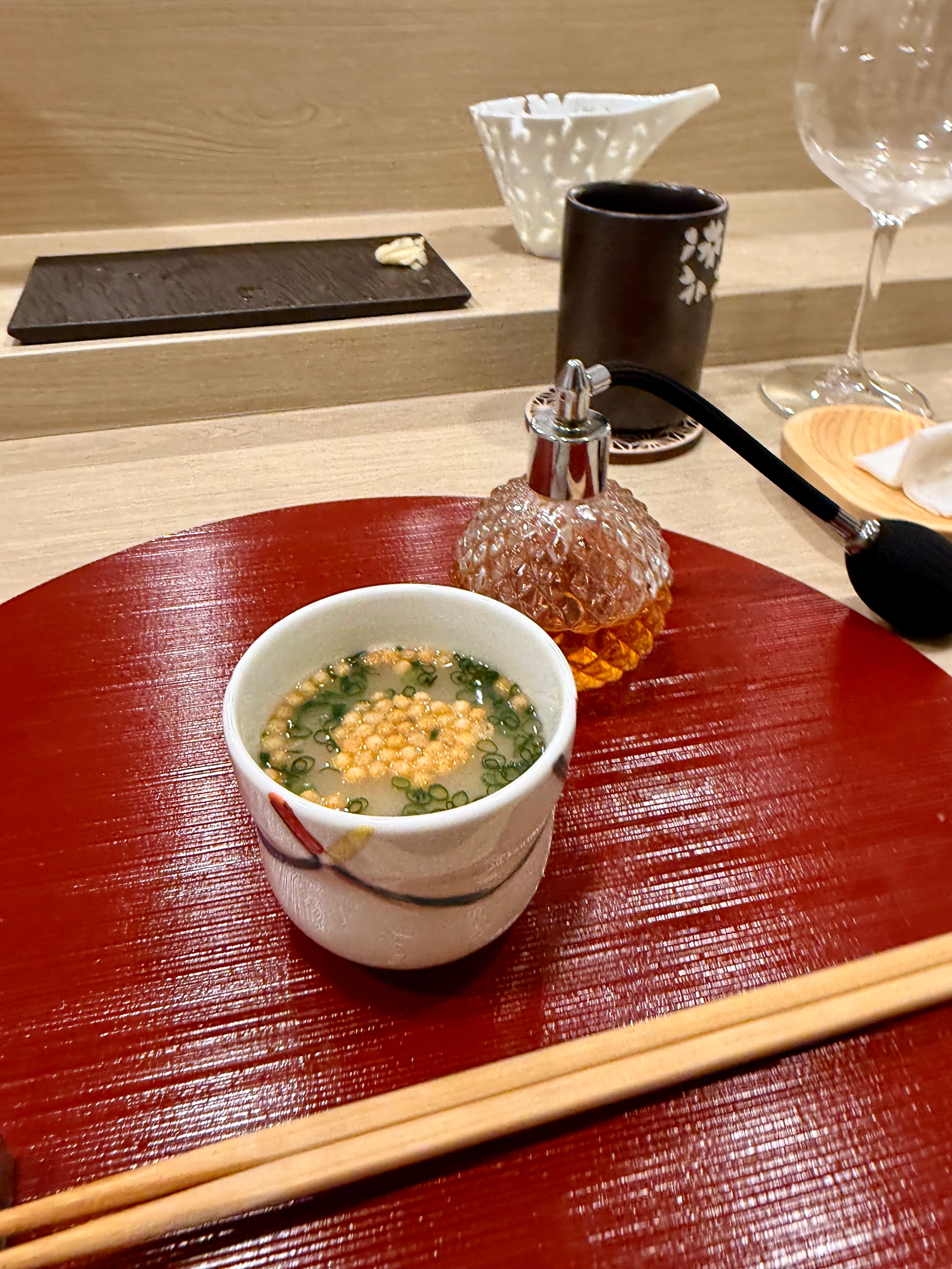 It’s back at Rusculler Omakase again, after 9 months after they moved out of their last place. I thought I should go back for a visit after such a long while and it was a good opportunity since my normal sushiya is closed for awhile. It was full house for lunch at Suguru with a few regulars and now there’s also a sous chef helping Chef Russell as well. Lunch started shortly after when everyone arrived so it’s otsumami first!