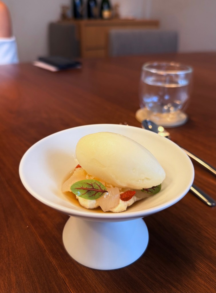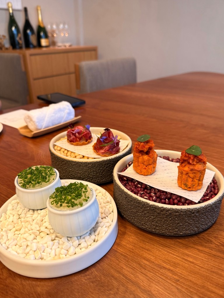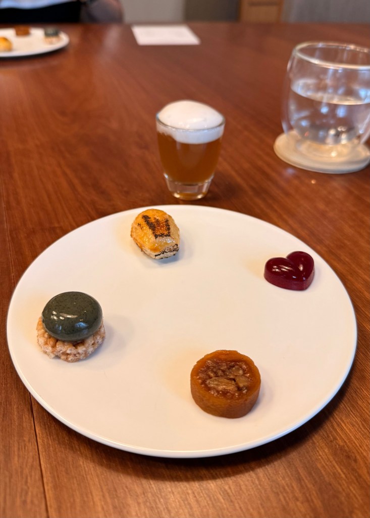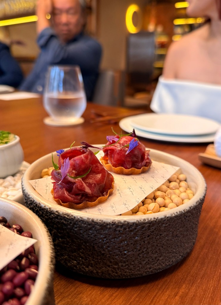 Snacks to start! I really like the wagyu beef slices. I thought the flavours were really well balanced, ending with the crunch in the tart. You can taste the aged kimchi with the second snack, finishing off with something refreshing at last