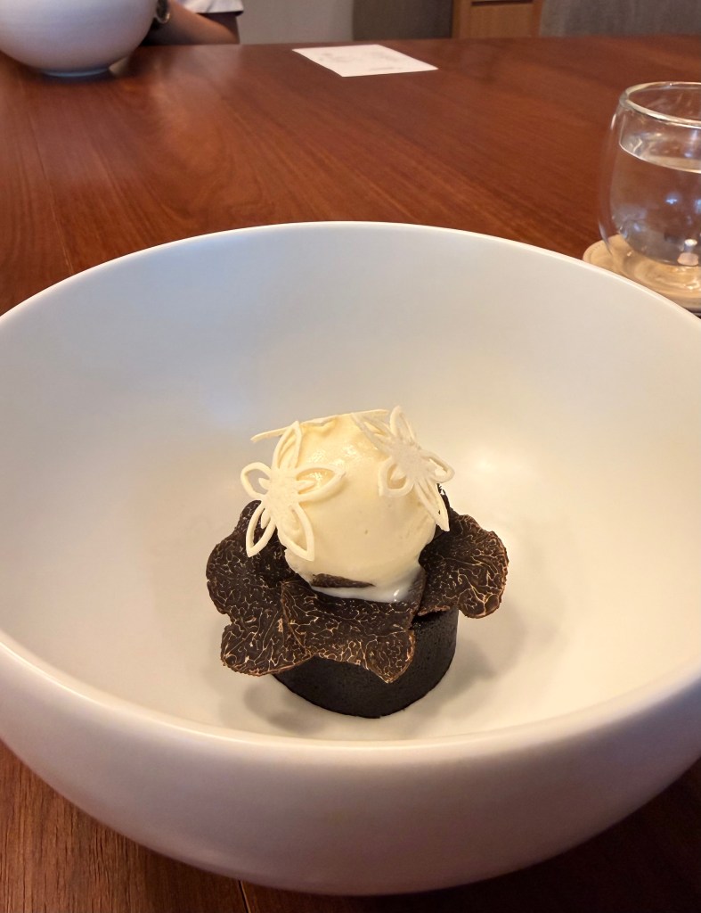 And a little extra from the chef to congratulate the couple. A really pretty and elegant dessert with a vivid taste of truffle, white chocolate ice cream and rice crisp tuille, the dessert was an impactful end to the meal