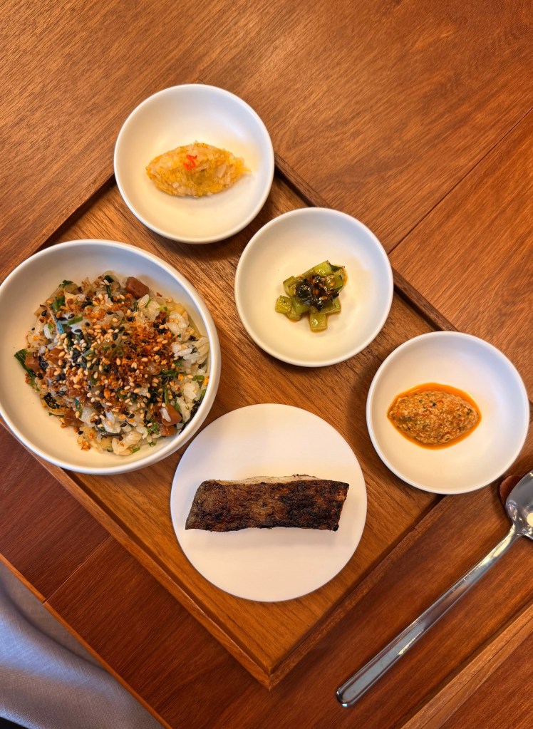 Personally, the banchan really shone. The rice packed a punch of flavour and the fish, though a little salty actually went well with the rice. But as you dig into a spoonful of rice then a taste of the banchan, the flavours really harmonise with each other
