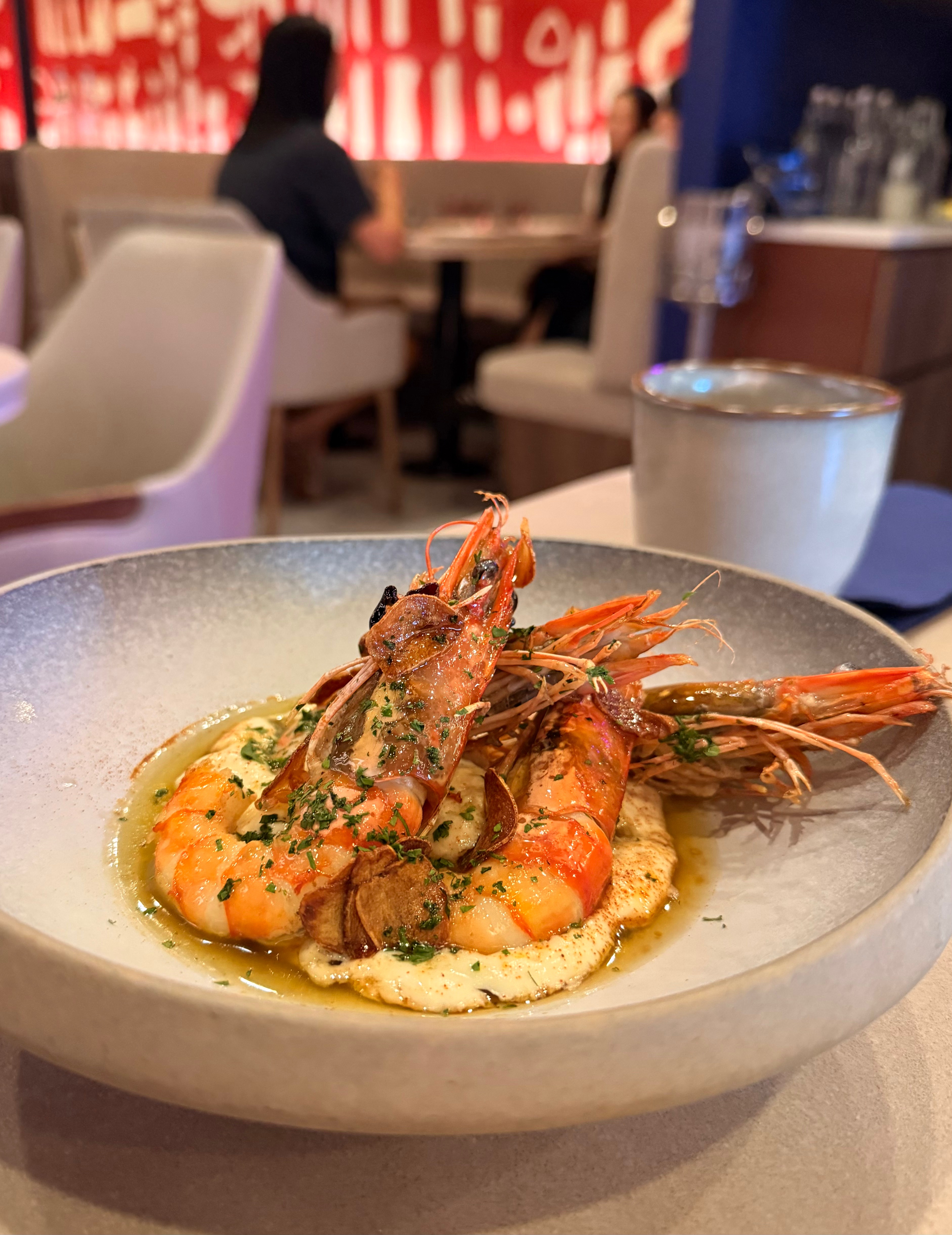 Spanish Garlic Prawns with Potato Foam, Sweet Paprika