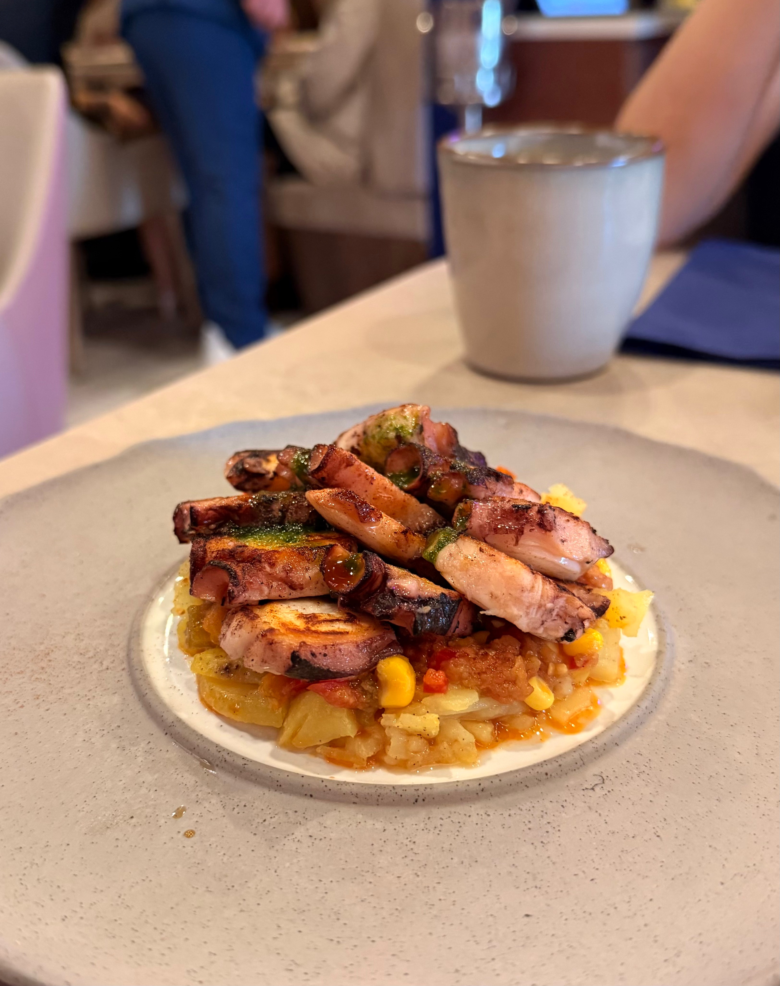 Grilled Octopus ‘A la Plancha’, Potato, Sweet Corn, Sobrasada Sofrito $32